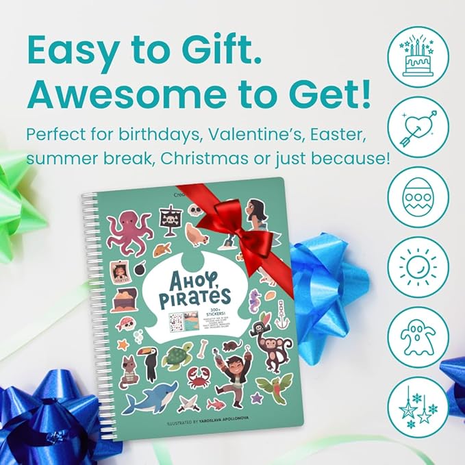 - Gifts for kids: The pirate-loving child in your life will jump for joy when opening this gift! Grandparents love our Mom and Dad-approved learning activity books for boys and girls and all the entertainment they bring. Pirate toy stickers are great rainy day activities and make the perfect gifts for birthdays, holidays, Montessori classrooms, and for make-believe enthusiasts ages 4-8.