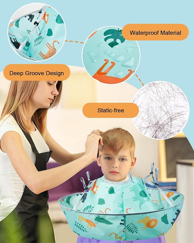 - Effortless Cleanup - Built with unique deep groove design, Lictin kids haircut cape is able to capture all hair clippings, preventing them from spreading around the hair cutting area, saving you the hassle of cleaning up hair scattered on the floor or clinging to kid’s clothes. Cleaning is a breeze. Simply slide the trapped hair into a disposal bag or bin, and you're done