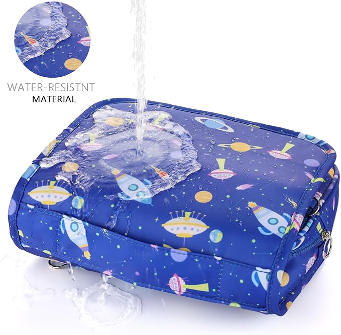 Kids Hanging Toiletry Bag for Boys, Travel Toiletry Bag for Little Young Boys Waterproof Wash Bag Toddler Traveling Toiletries, Space Blue
