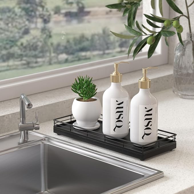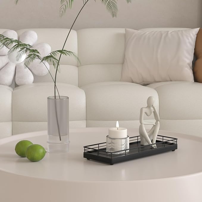 - VERSATILE FUNCTIONALITY: Elevate your daily routine with our bathroom counter tray; Neatly arrange bathroom essentials like soap, toothbrushes, cotton swab and lotions, keeping your countertop tidy; Add a touch of elegance to your dresser by using the vanity tray to showcase perfumes, jewelry, and cosmetics; Impress your guests with neatly arranged hand towels and toiletries presented on the small tray or use it as a toilet tank tray