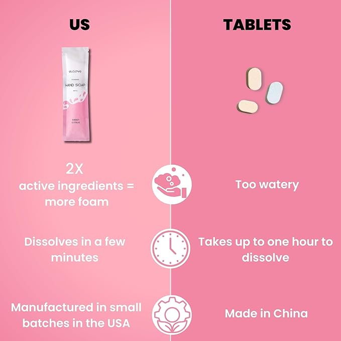 - NO MORE WATERY SOAP: Unlike foaming hand soap tablets that often feel thin and ineffective, our concentrated hand soap powder is packed with 2-3x more active ingredients. The result? A rich, creamy foam with every pump that actually feels like soap—leaving your hands clean, fresh, and moisturized every time.