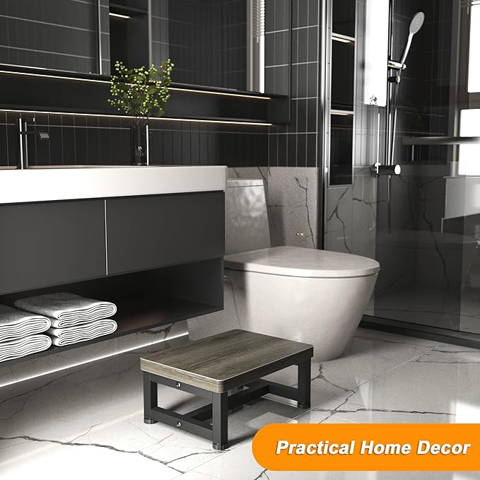 - 【Heavy Duty & Sturdy Construction】Wooden step stool is constructed by 1 INCH solid wood, which is waterproof, easy to clean, scratch-resistant, eco-friendly. Bed stepping stool with heavy-duty powder-coated, high-strength steel tubing is extremely strong, rust-resistant, can withstand up to 500 pounds, and will ensure years of trouble-free use