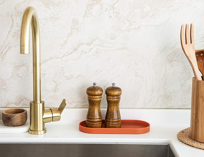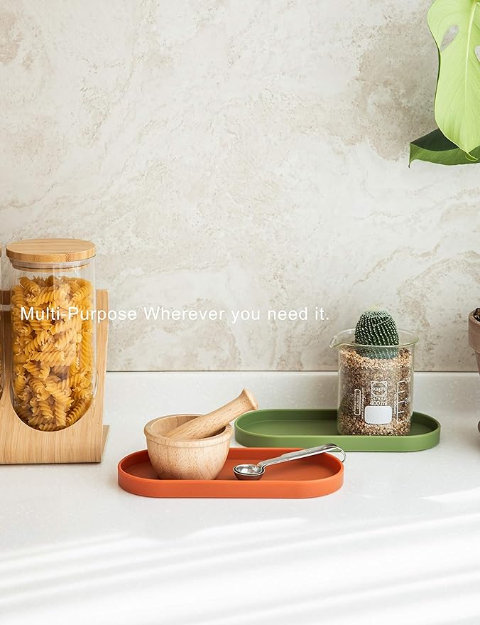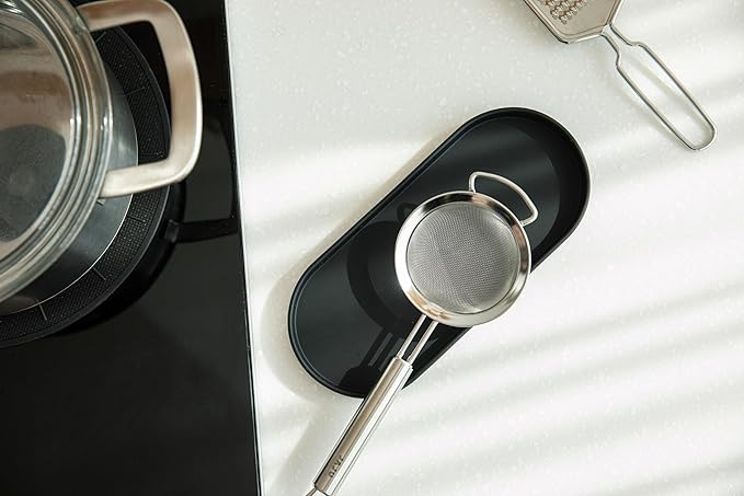 Lazy K Silicone Tray - Small Vanity Tray Organizer - Spoon Rest Holder - Kitchen Sink, Bathroom, Multi-Purpose Modern Counter Organizer (Black)