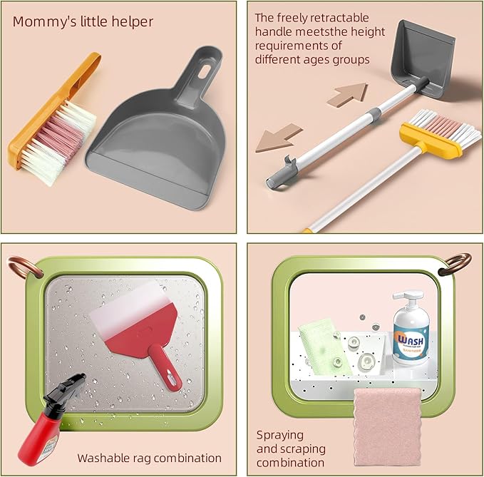 - 【Great Gift to Encourage Hands-On】Let your children pretend to do housework and develop a good habit of keeping the house clean. Perfect for parties, role-playing, school classes, Christmas, birthdays or other festivals.