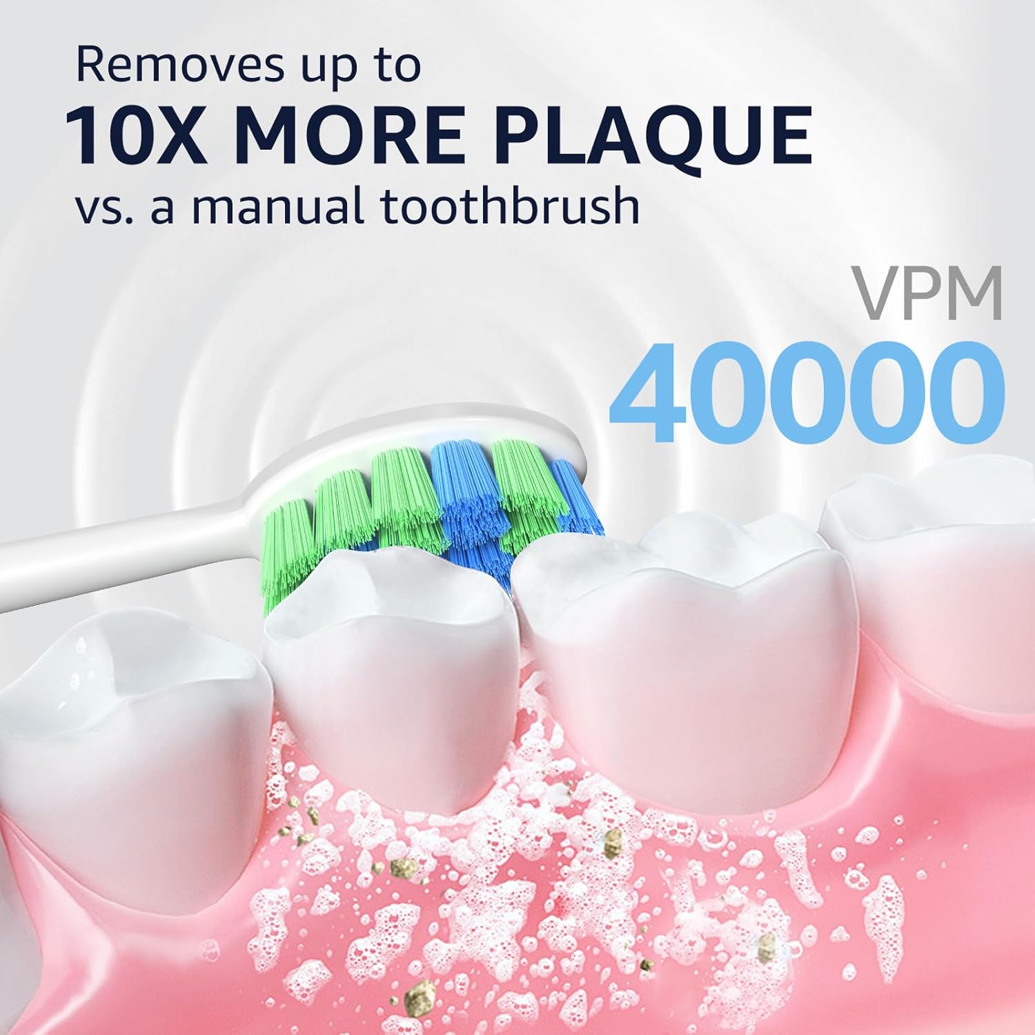 - Superior Cleaning Power - Our electric toothbrush delivers an impressive 40,000 high-frequency vibrations per minute, providing a deep and thorough clean that is 5 times more effective than low-frequency electric toothbrushes for adults. Say goodbye to 99.99% of plaque and surface stains for a healthier, brighter smile.