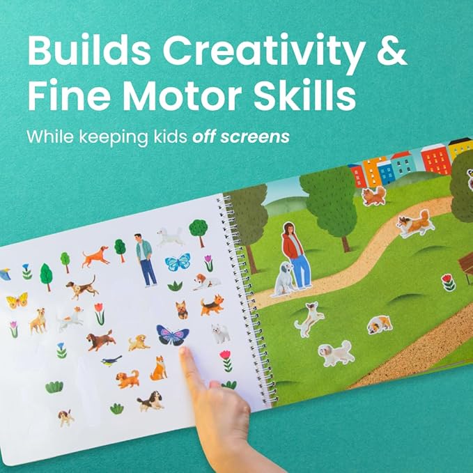 - Learn through play: Kids build fine motor skills, explore spatial awareness, and strengthen hand-eye coordination as they peel and stick stickers onto colorful scenes! Engaging in conversations about the sticker book characters will help imaginations run wild & encourage make-believe and pretend that can foster bonds between you and your child. Go ahead - play on!