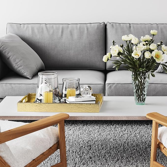 - ELEGANT AND STYLISH: Gorgeous faux alligator leather with exquisite polished gold handles brings this unparalleled looking luxury tray. The maximum suitable for all decoration styles of home or commercial premises. You can keep it in your living room, nursery, kitchen, bedroom, bathroom.