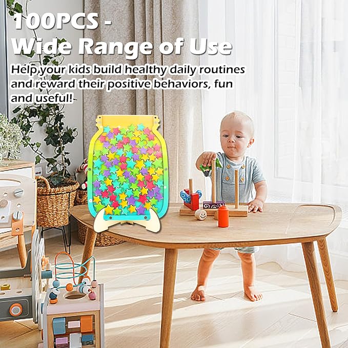- ✨Quality Material: The reward jar for kids behavior is composed of wood and acrylic, which is strong and long lasting to use, not easy to wear or break. There is a film on the star jar that can be removed before use.