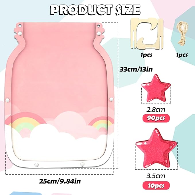 - ✨Package Includes: Star reward jar size is 25 x 33 cm/ 9.84 x 13 inch; With 100 stars, 5 colors, 20pcs each; Along with the classroom reward jar itself, the package also includes a solid rope for hanging and wooden stand for table display, you can hang the jar on the wall or place it on the table.