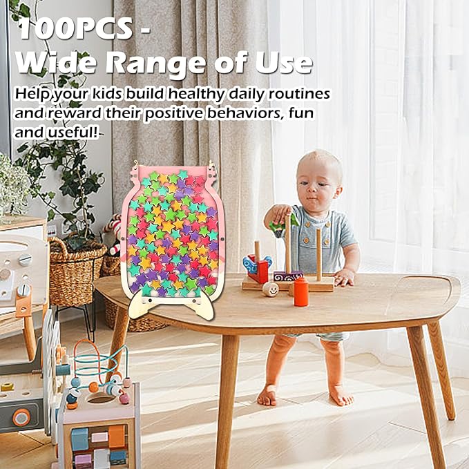 - ✨Quality Material: The reward jar for kids behavior is composed of wood and acrylic, which is strong and long lasting to use, not easy to wear or break. There is a film on the star jar that can be removed before use.