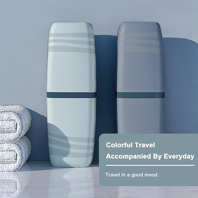 - 【Package Include】You will receive 2 PCS Travel Toothbrush Case are gray and blue, each is 2.4 x 2.4 x 7.9 inch, compact size are perfect for small spaces like bathrooms or dorm rooms.