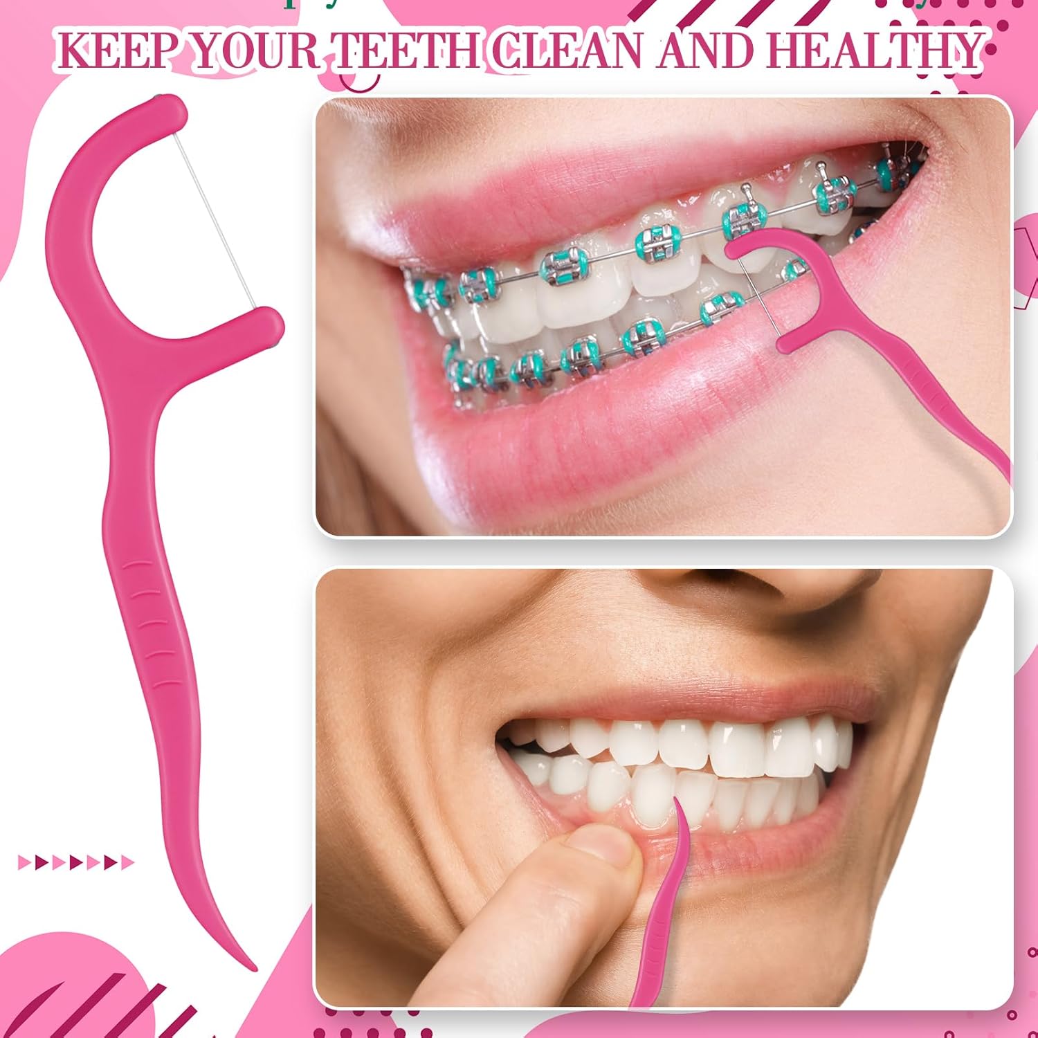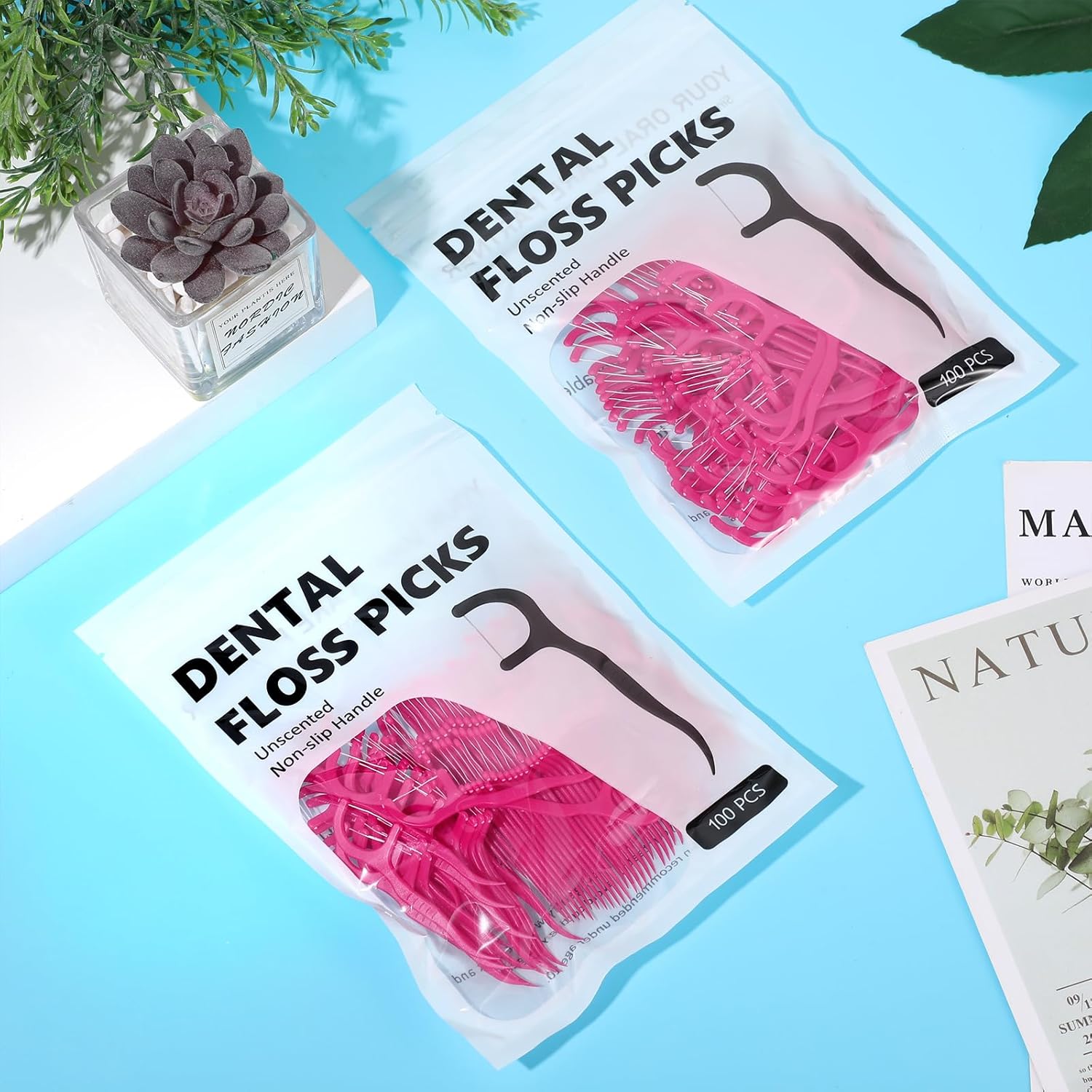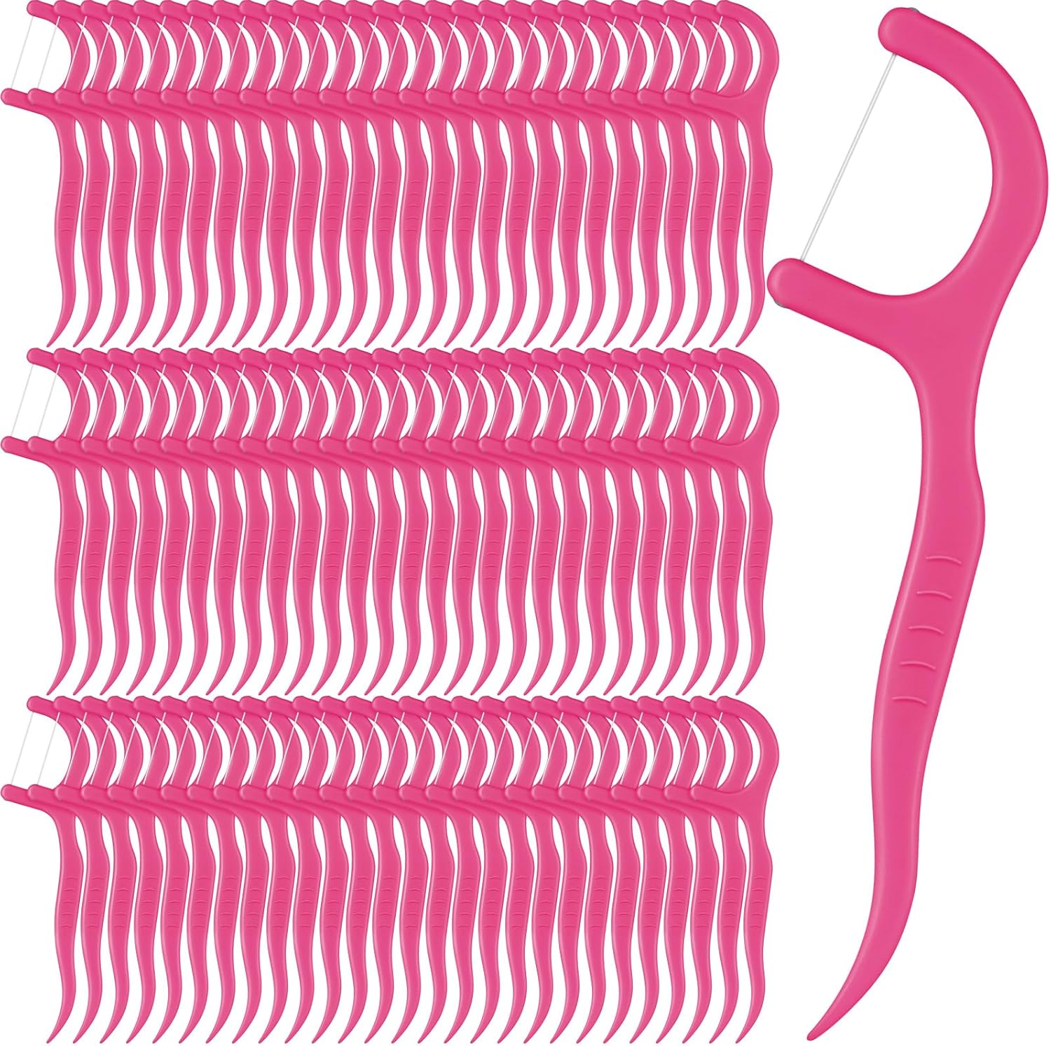 Baderke 200 Count Floss Picks Bulk Non Breakable Tooth Picks Flosser Dental Floss Sticks for Adults Teeth Cleaning Dental Flossers for Family Pack Travel(Hot Pink)