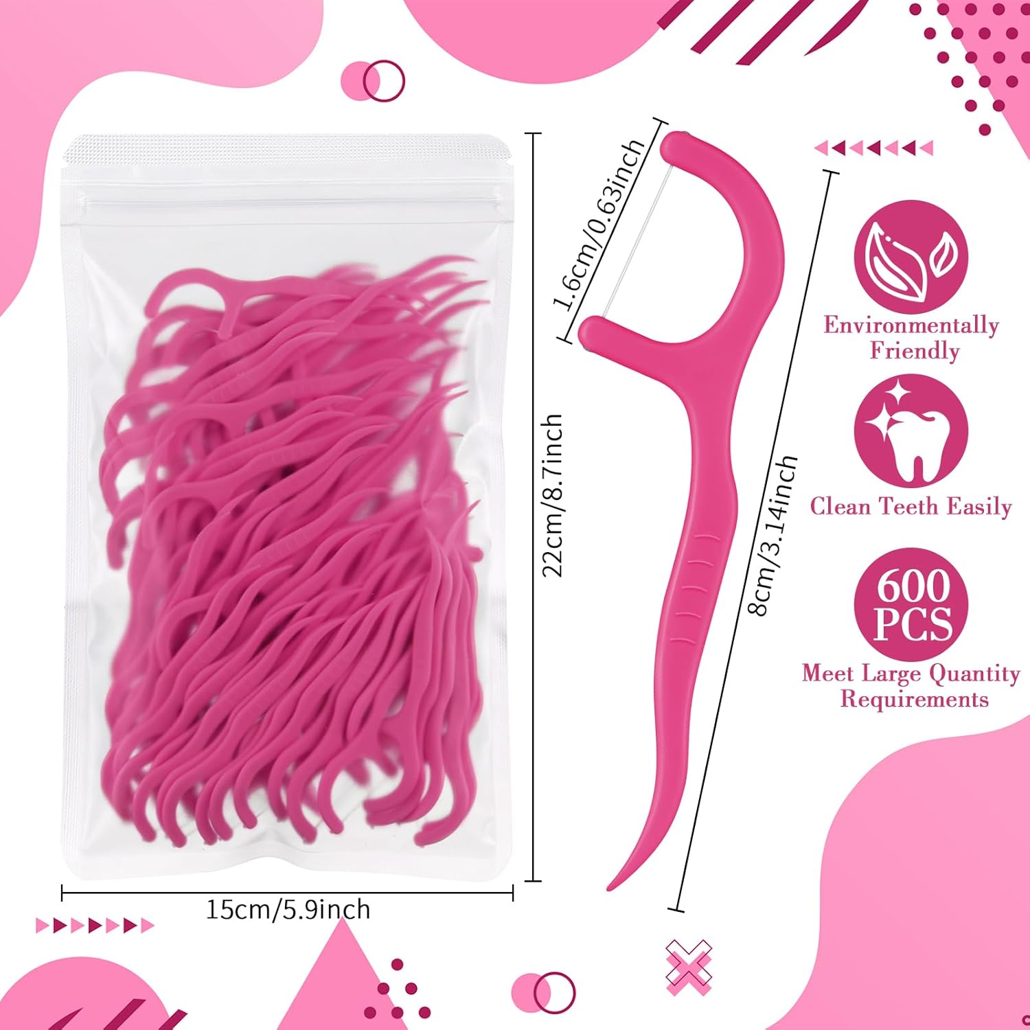 Baderke 600 Count Floss Picks Bulk Dental Flossers Picks for Adults Non Breakable Tooth Picks Flossers Teeth Cleaning Dental for Family Pack Travel(Hot Pink)