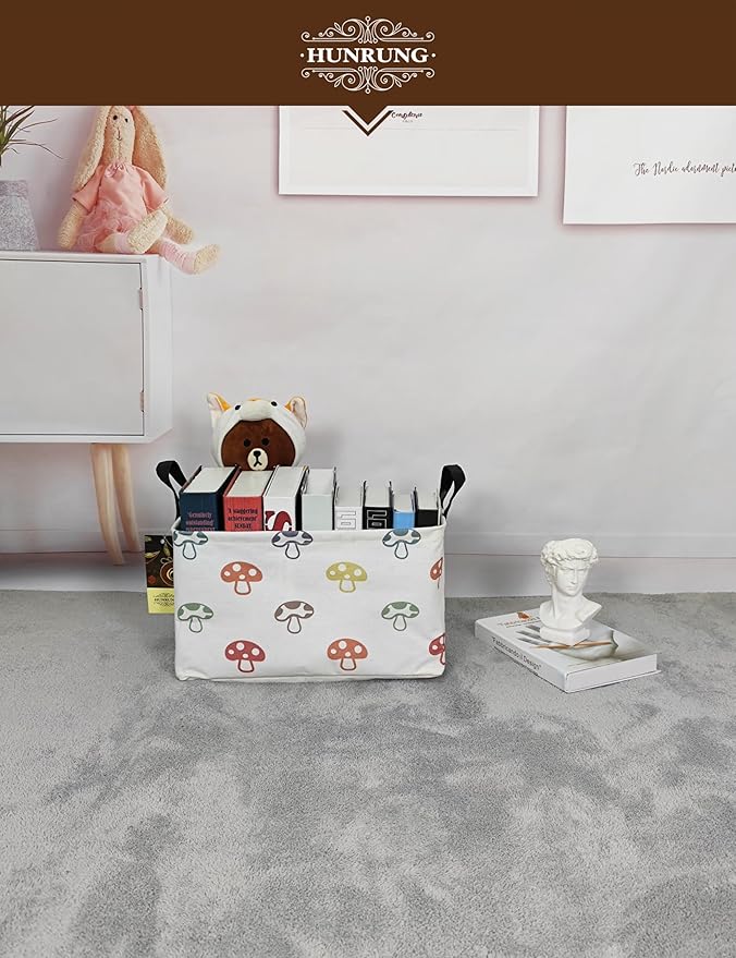 HUNRUNG Rectangle Storage Basket Cute Canvas Organizer Bin for Pet/Children Toys, Books, Clothes Perfect for Rooms/Playroom(REC-Color Mushroom)