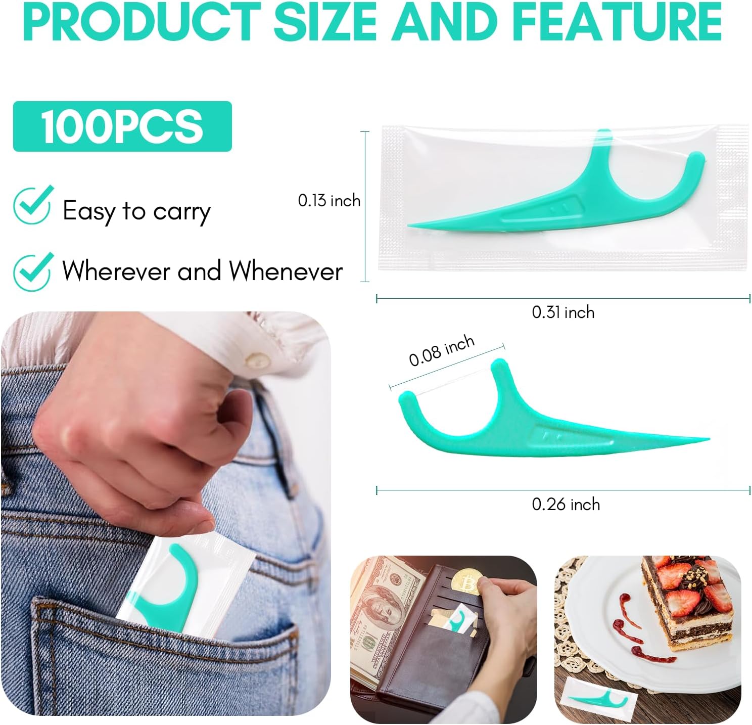 - 【EASY TO CARRY AND TRAVEL】 Travel floss picks that go wherever you go. Independent packaging greatly saves our space, ensures you have a sanitary floss pick for teeth when at a restaurant, travelling, backpacking, hiking, or just out and about, help you have a fresh, clean mouth anywhere and anytime