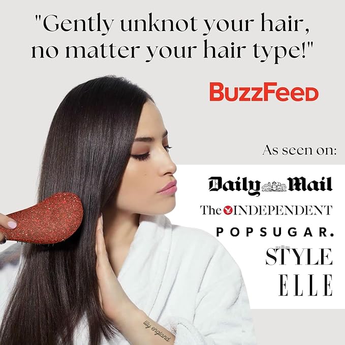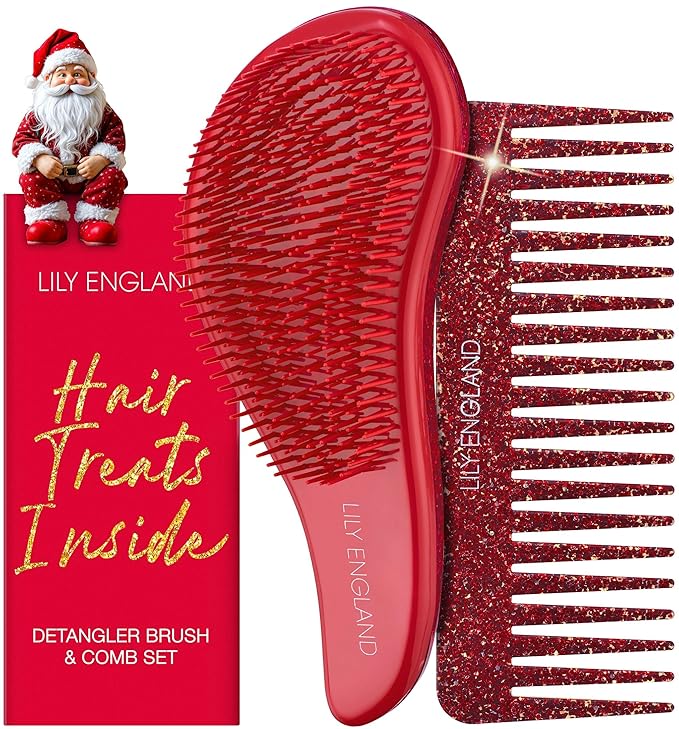 Lily England Detangler Brush & Comb Set - Lightweight Wide Tooth Detangling Tool for Women & Kids - Smooths Curly, Straight, Dry, Fine, & Thick Hair, Red Glitter