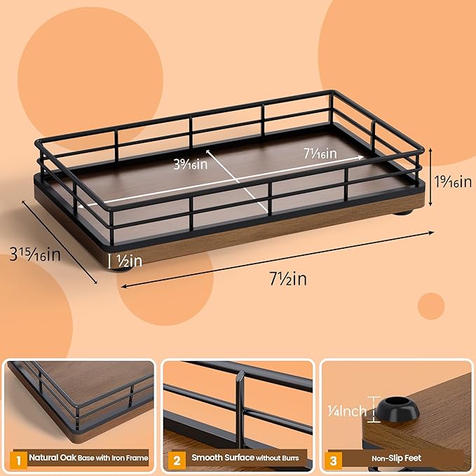 - Versatile Functionality: Elevate your daily routine with our tray for bathroom counter; Neatly arrange bathroom essentials like mouthwash with cups, toothbrushes, cotton swab, keeping your countertop tidy; Add a touch of elegance to your dresser by using the vanity tray to showcase perfumes, jewelry, and candles; The small tray can also be used to store keys, watches and change at the entrance