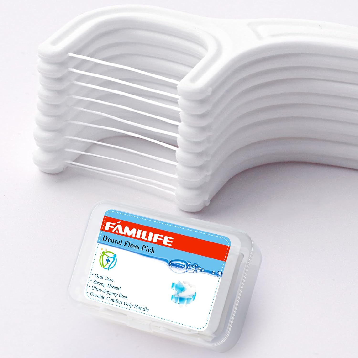 - 【REMOVES FOOD】 FAMILIFE tooth string can help you to clean food debris between your teeth. Deep cleaning between teeth and gums. Easy to operate, convenient to carry. These dental flossers are specifically designed for adults, offering a comfortable grip and hassle-free maneuverability