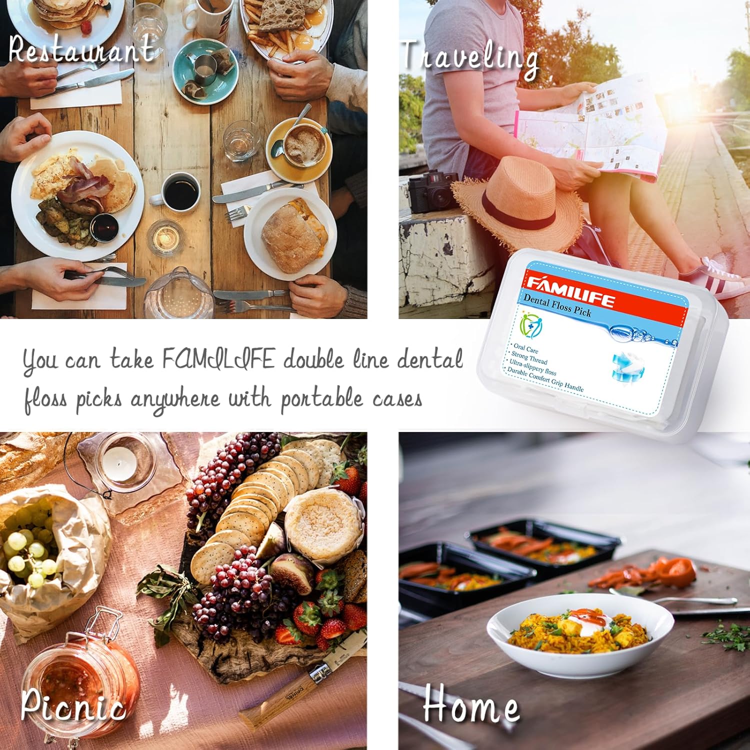 - 【WHITE UNFLAVORED FLOSSERS WITH TRAVEL CASE】 FAMILIFE flosser use travel cases for more convenient. Easy for you to travel and outgoing; You can take them to your office, your car, your backpack and so on. 4-Count dental floss cases help you have a fresh, clean mouth anywhere and anytime