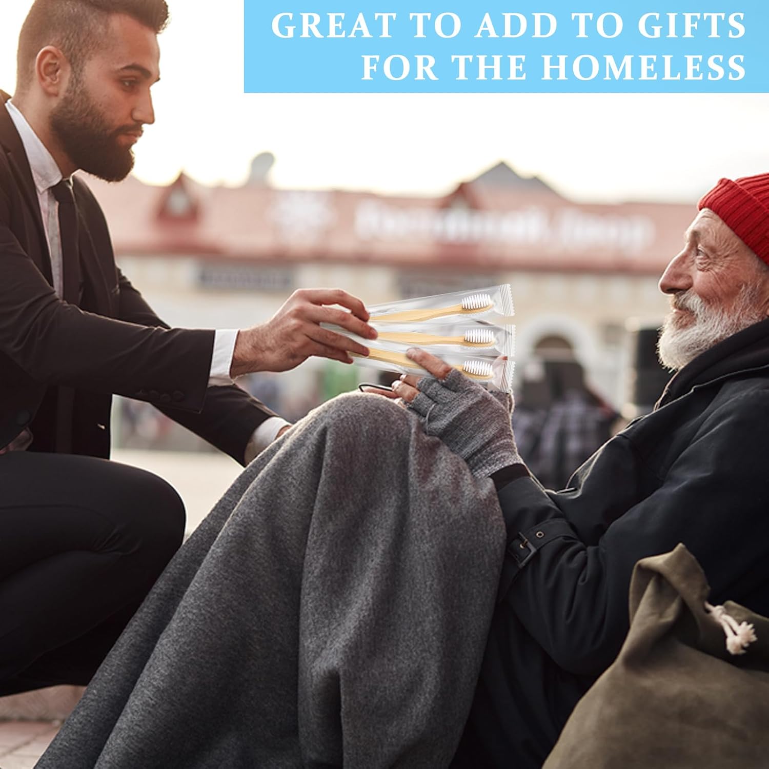 Sliner 100 Packs Prepasted Disposable Toothbrush Bamboo Prepasted Individually Wrapped Pre Pasted Toothbrush with Bamboo Handles Homeless Gift Set for The Homeless (Classic Color)