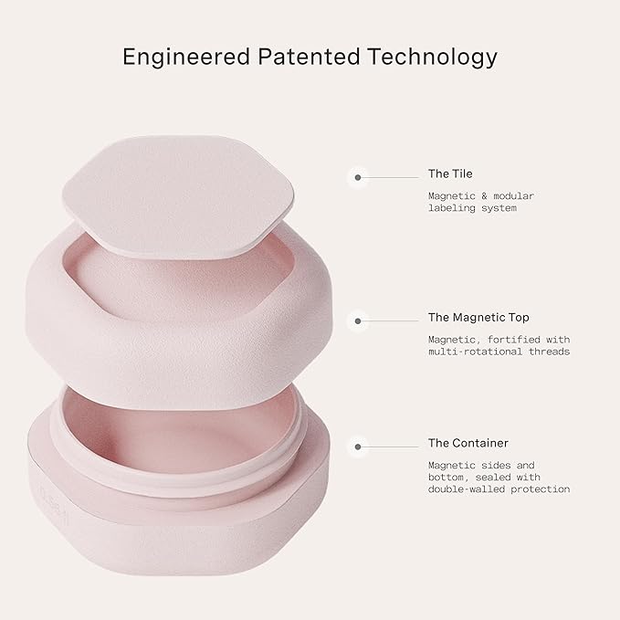 - PATENTED MAGNETIC DESIGN - Designed for seamless storage, our travel capsules feature a magnetic design that connects each container vertically or horizontally. They include magnetic labels that seamlessly swap between The Flex Small, The Flex Medium, and The Flex Large Capsules.