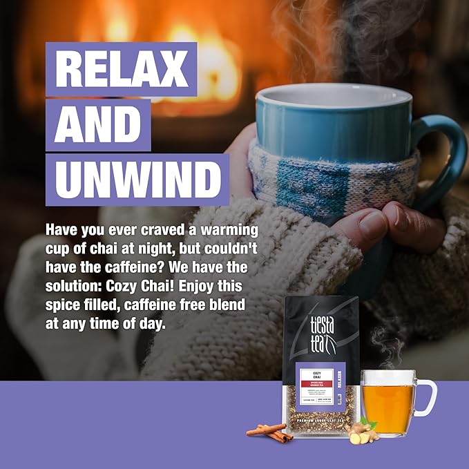 - SPICED CHAI ROOIBOS TEA: Crave the warmth and flavor of chai, day or night? We've got the answer: Cozy Chai Rooibos Tea! Savor this aromatic, caffeine-free blend filled with the comforting spices you love. Whether it's morning, afternoon, or evening, indulge in the soothing allure of chai without the caffeine jitters. Enjoy it hot or refreshingly iced, and relish the essence of summer with every sip.