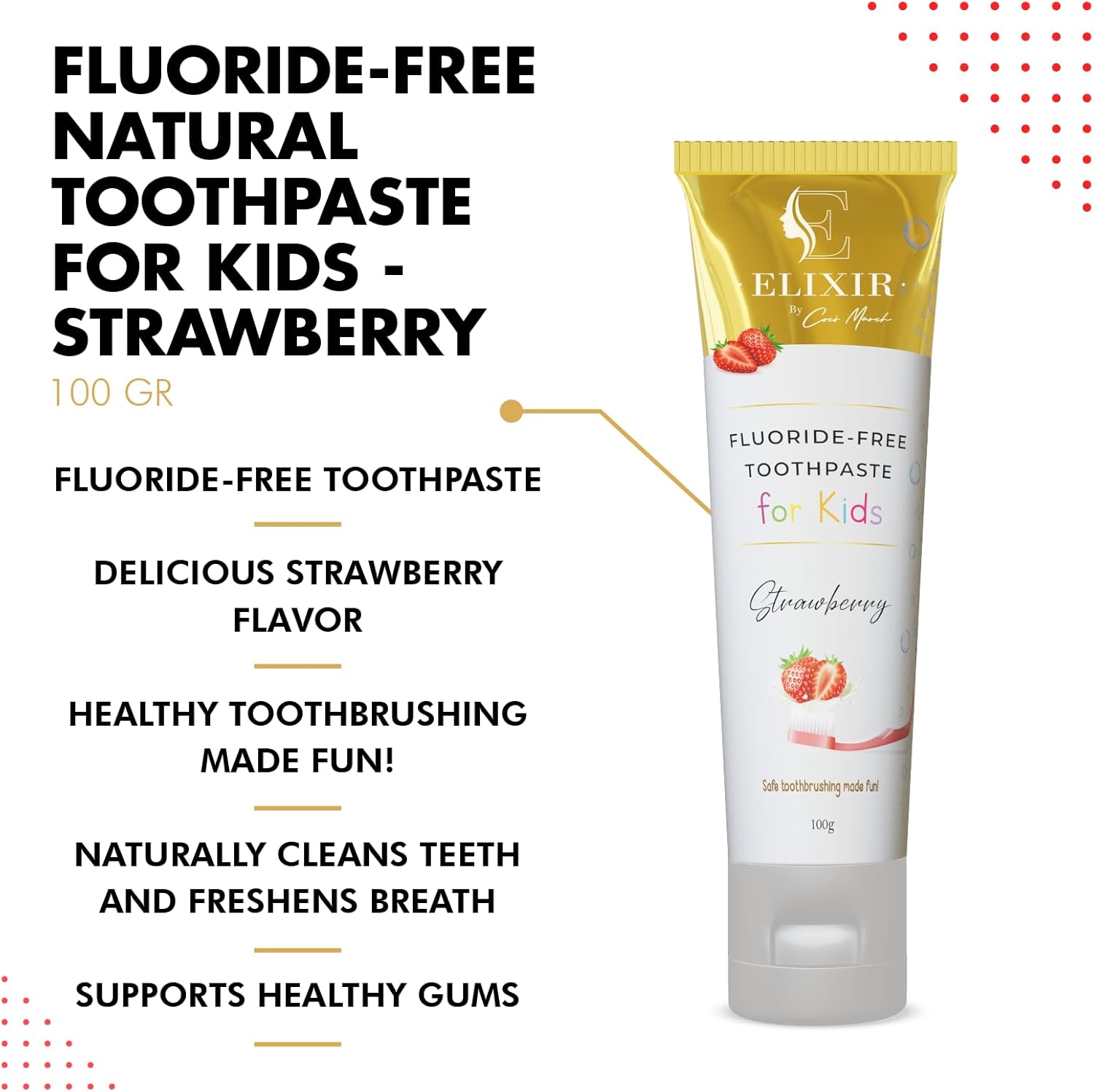 Elixir by Cocó March Fluoride Free Brightening Natural Toothpaste Strawberry Kids 5.3 Oz (100g)