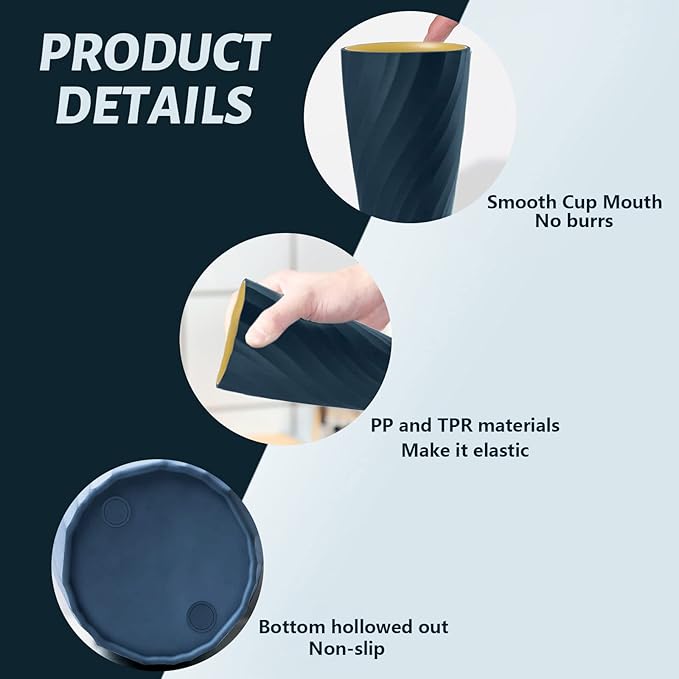 - 【Sturdy & Thick】 Our toothbrush holder cup is made of PP and TPR material, which makes it flexible, elastic, strong and resistant to falling. The smooth cup surface has no burrs and will not scrap your mouth or hands.