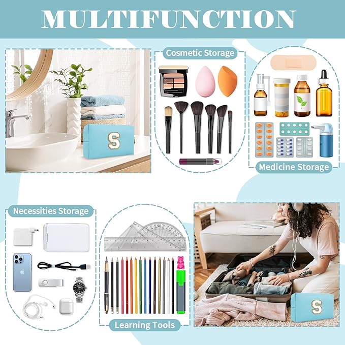 - 🏶【 Multi Purpose 】Personalized makeup bags can be used as daily handbags, cosmetics and skincare organizing bags, storage bags, and toilet bags. The initial makeup storage bag can be used during travel because it is lightweight and does not take up too much space in the suitcase.
