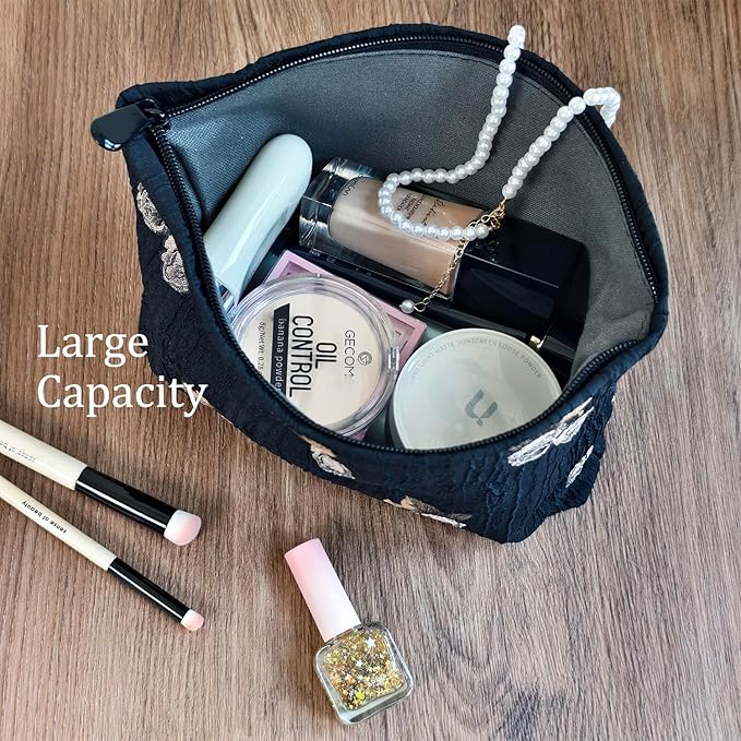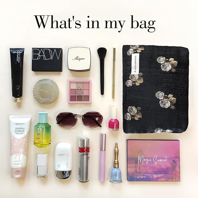 - Stylish Elegant Design: Unique and romantic appearance design, every time you use it can bring you a good mood.Smooth zipper that will protect your items perfectly when closed. The open design makes it easy to quickly pick out the makeup you need