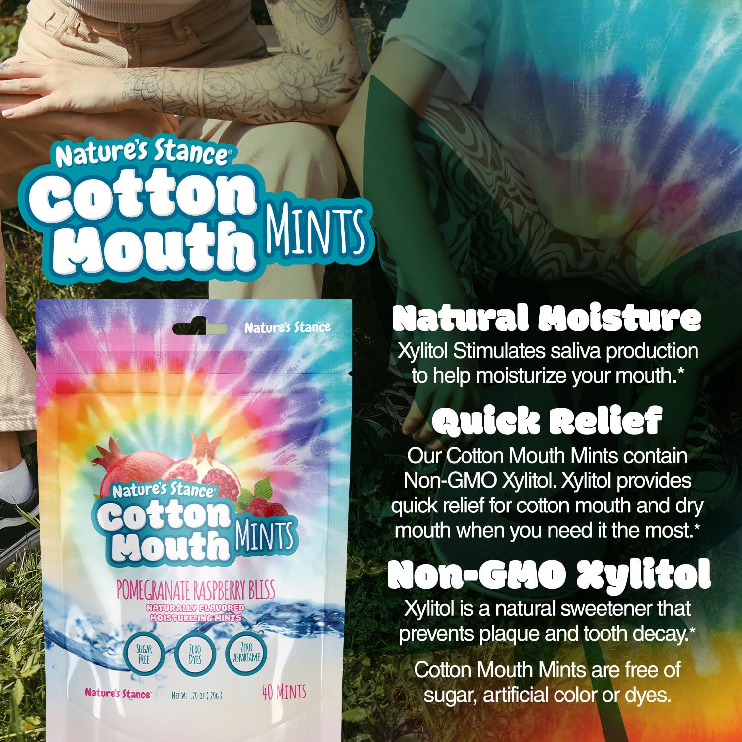 - Nature’s Stance Xylitol Mints for cotton mouth relief - Get relief from dry mouth and restore moisture with our dry mouth mints. Our xylitol lozenges for dry mouth are specially formulated to combat dry mouth and leave your mouth feeling revitalized and hydrated.