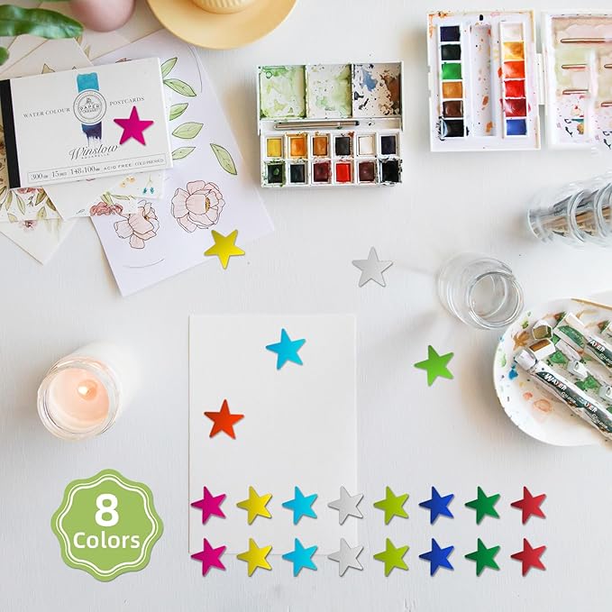 - ※【Safe Materials and Perfect Size】These multi-color foil star stickers is made of aluminum foil paper, and the surface is shiny and smooth,which printed with non-toxic ink, smell less that make the safer than others similar products. each foil star stickers is about 0.6inch (1.5cm) in diameter.