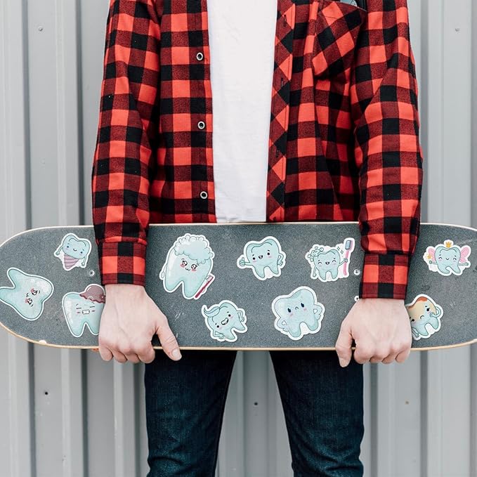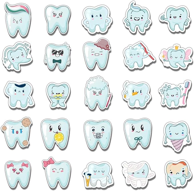 50 Pack Pcs Dental Tooth Stickers for Water Bottles Waterproof Vinyl Laptop Luggage Planner Scrapbooking Dentist Sticker Packs Teens Adults Boys Girls Kids Aesthetic Small Decals