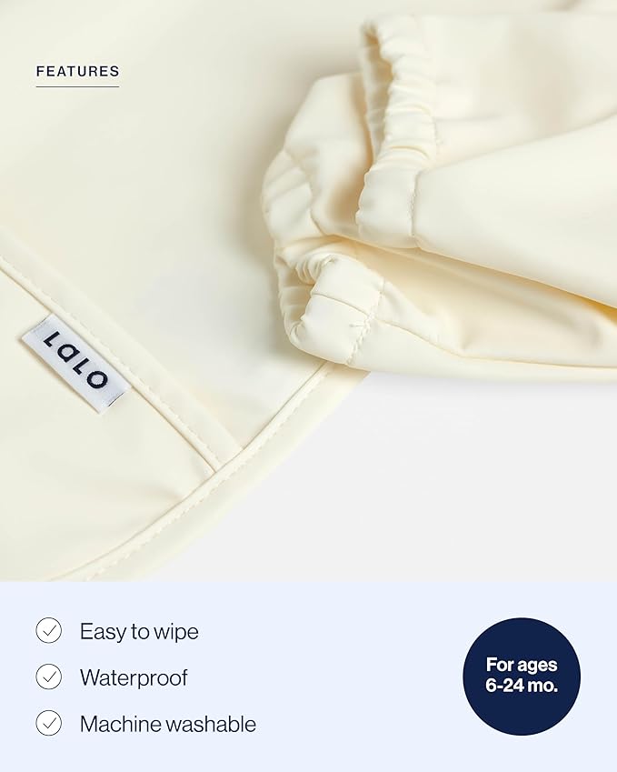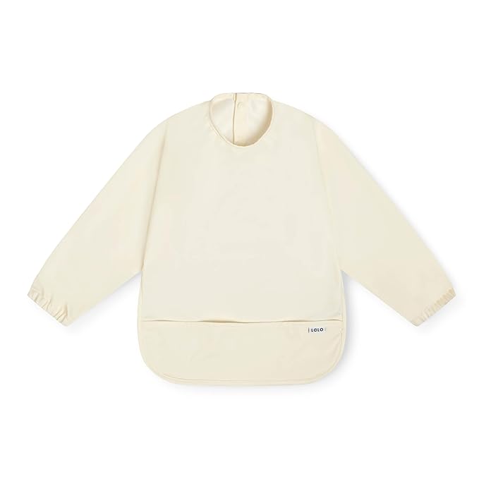 Lalo Smock Bib - Long Sleeve Bib for Infants and Toddlers - Elastic Cuffs, Large Catch-All Pocket, Waterproof Recycled Polyester - Easy to Clean for Mealtime and Art Time - Oatmeal Infant