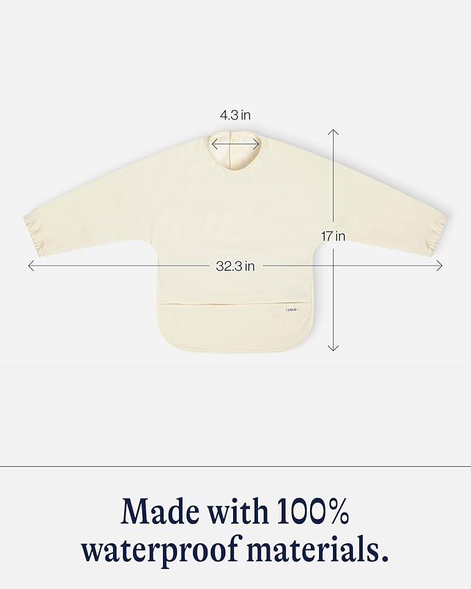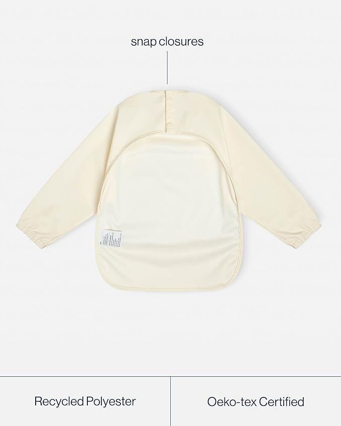 - ECO-FRIENDLY: Crafted from Oeko-Tex Certified recycled polyester, this bib with sleeves is free from harmful substances. Meets and exceeds safety standards so you can trust it for daily mealtime and creative play use.