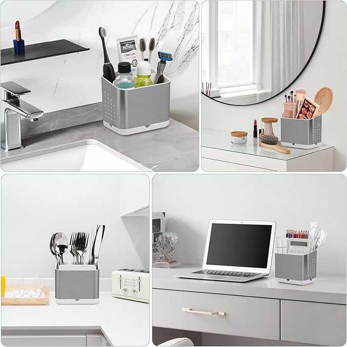 - MULTIFUNCTIONAL ORGANIZATION: This toothbrush caddy can not only be used for bathroom countertop to organize electric toothbrushes, razors, combs, floss and so on, but also pens, rulers, makeup tools and so on.Keep your bathroom countertop, office desktop, makeup countertop, kitchen countertop and so on well organized.