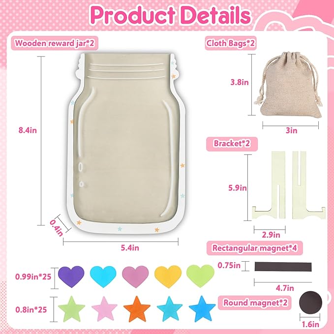 - MAGNETIC REWARD JARS:You will recive 2 kids reward jars with tokens in a variety of colors.This is a great way to motivate children to achieve their goals and can be used not only in the classroom or for educational purposes but also at home. The reward jars provide a visual representation of progress, it is a constant reminder of what children are working towards and encourages them to strive to do their best while promoting their growth and development