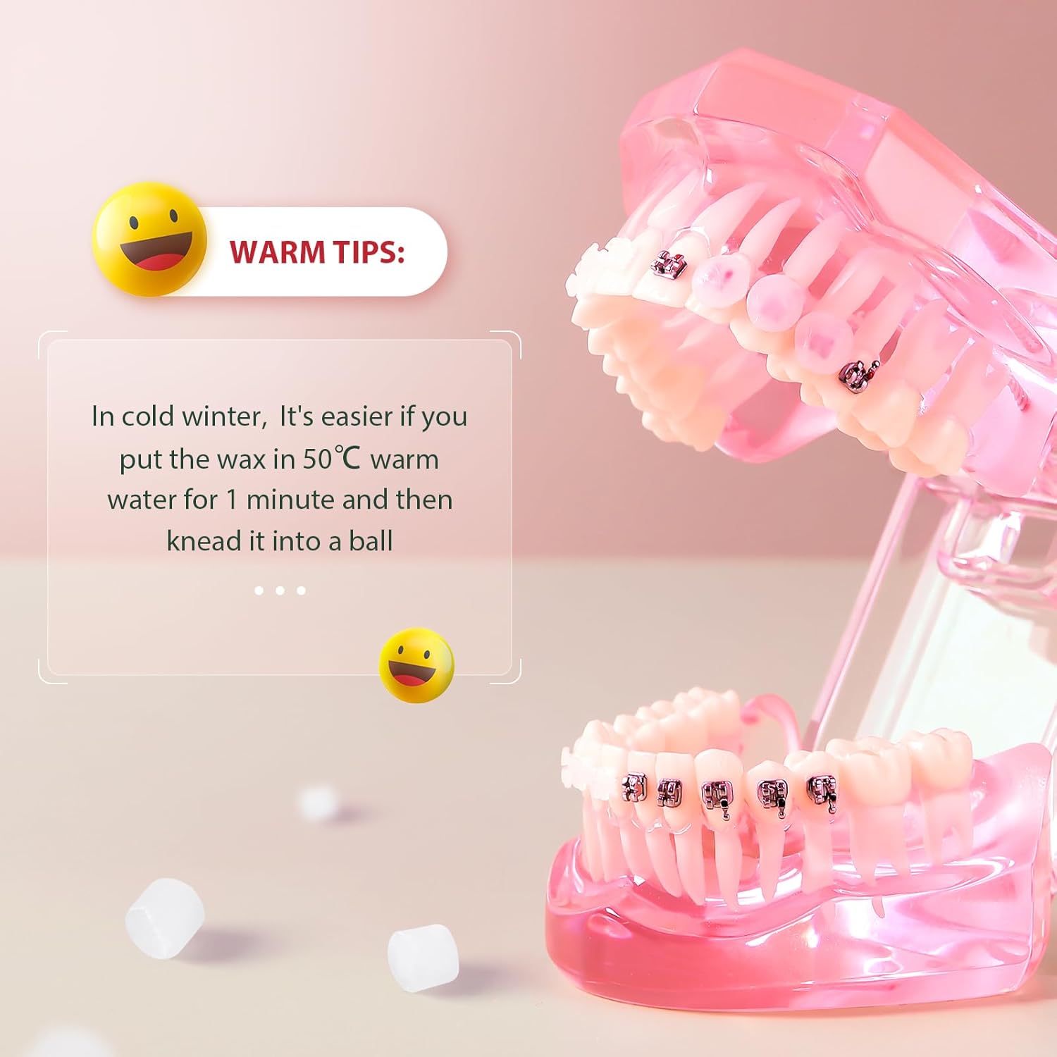 - Precut Wax Dots: Pre-cut braces wax is easy to use without tools, just break off a small piece and knead it into a ball with your fingers and put on the braces. Please note that wax are not edible