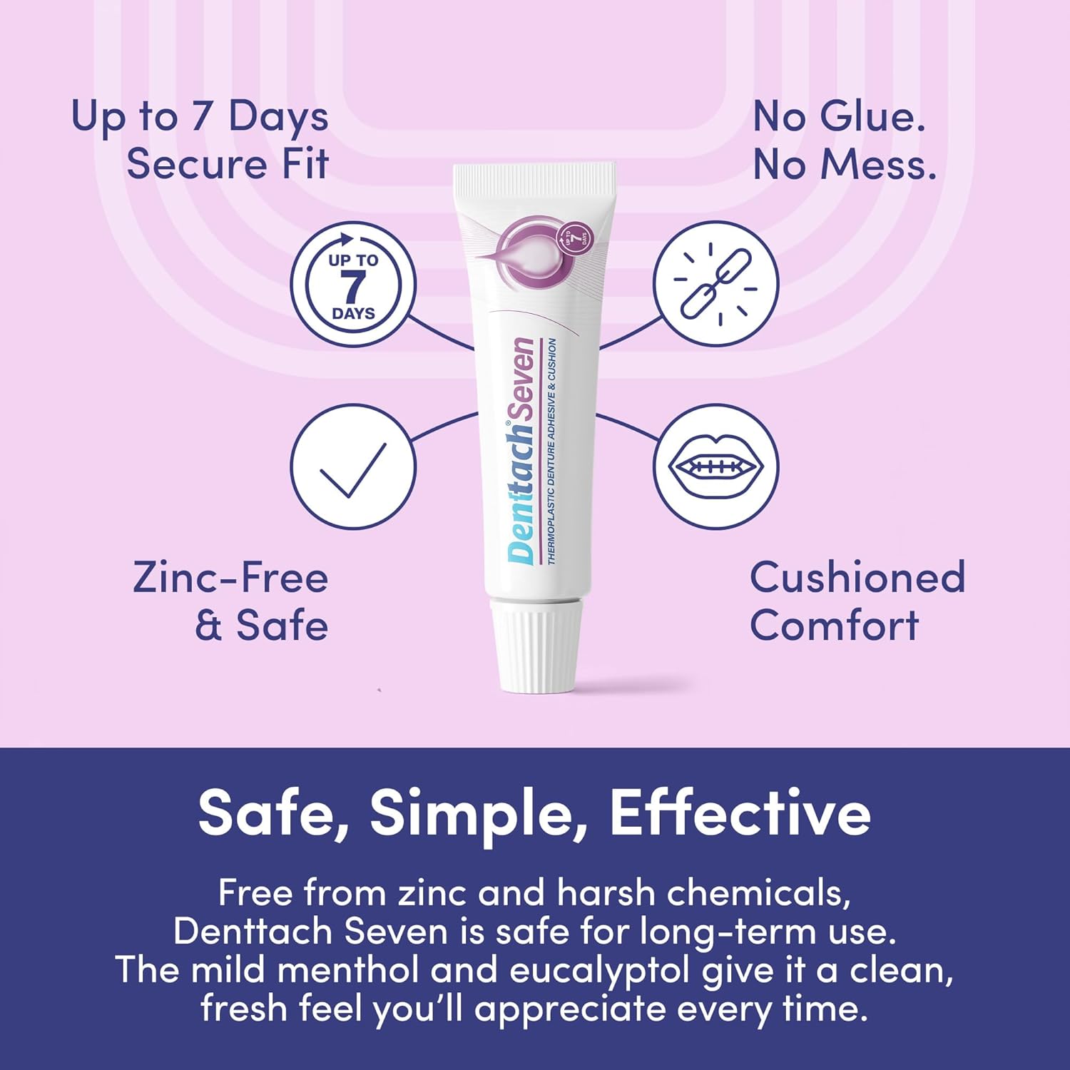 Denttach Seven Denture Adhesive, Thermoplastic Denture Adhesive, Cushion, Reliner for Upper and Lower Dentures, Comfortable, Secure Denture Grip for Up to 7 Days, Non Glue, Zinc Free
