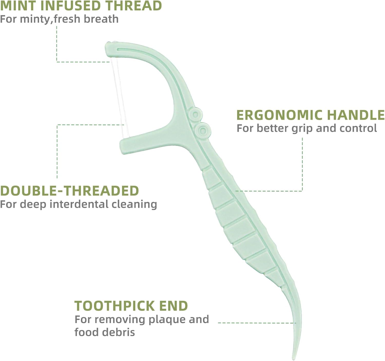 - SUPER STRONG FLOSS: Dental floss is made of food-grade polymer with high tenacity and strong tensile force. It adopts a unique round thread design, which can smoothly slide between teeth without tearing and breaking, and does not damage the teeth.Get excited about using your dental flosser and enjoy delicious mint flavored floss that you can taste!