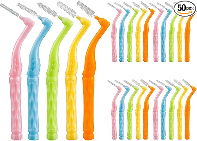 50PCS L-Shaped Interdental Brushes Braces Toothbrush Short Handle,5 Different Sizes Dental Floss Brush Angled Interdental Toothpick