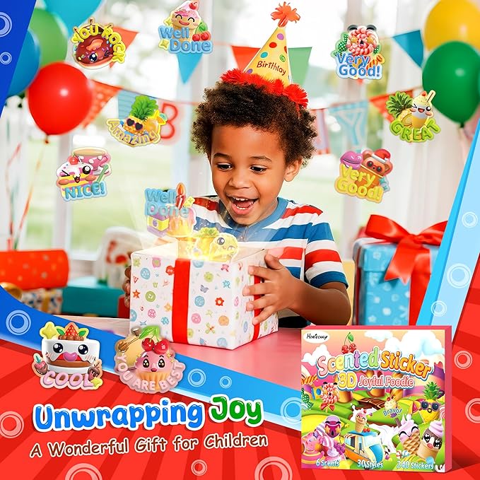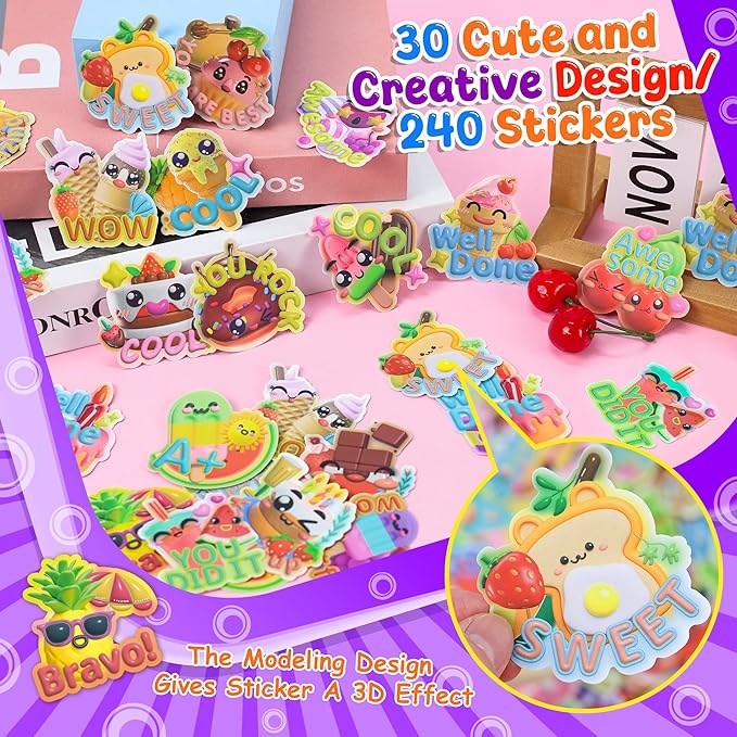 HORIECHALY 240 Pcs 3D Large Food Scratch and Sniff Stickers, Motivational Reward Scented Sticker for Kids & Teachers, Smelly Stickers for Classroom, Birthday, Student Party, School