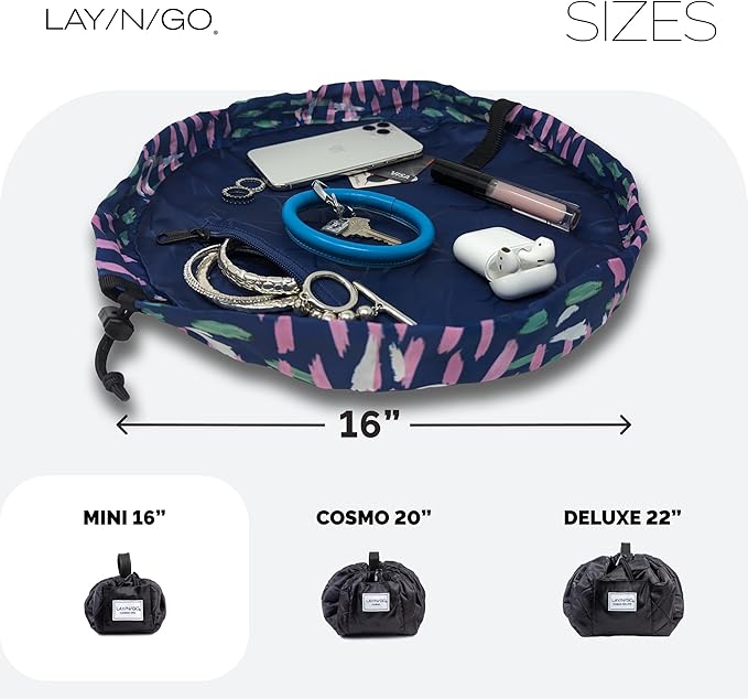 - FAST CLEANUP, NO MESS: Lay flat to instantly access all your makeup, then cinch closed for effortless cleanup – no more digging through cluttered bags or bathroom counters.