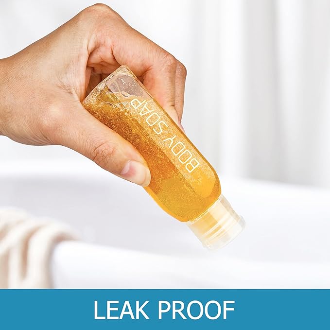 - High-Quality and Leak-proof Squeeze Bottle: Made of sturdy, reusable PET plastic, these travel size toiletries bottles are lightweight and space-saving; The flip caps of these travel bottles are designed with a tight seal to prevent leakage or spills and ensure that your personal care products stay secure and no mess, perfect travel shampoo bottles, empty travel size bottles.