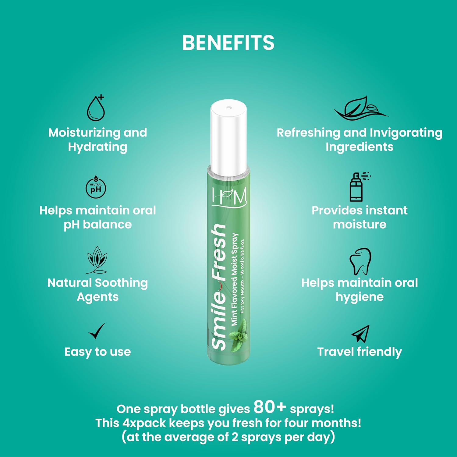 - ALCOHOL-FREE AND NATURAL FORMULA: The Smile Fresh Moist Spray is crafted with an alcohol-free, natural formula. This ensures a safe and gentle solution for dry mouth relief, without the use of artificial additives, chemicals, or preservatives.