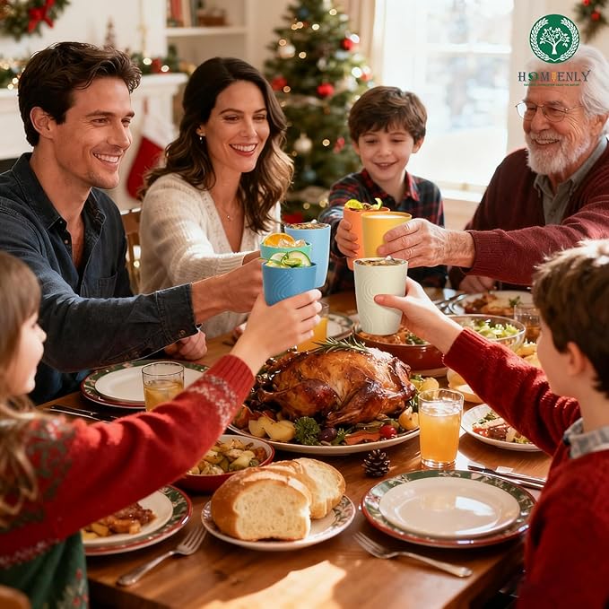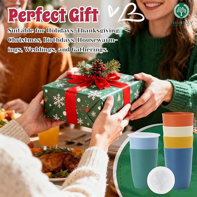 Homienly 16 OZ Wheat Straw Cups for Kitchen, Drinking Cups with Lid Set of 6, Unbreakable Cup Set Reusable, Stackable Water Tumblers (Recommend Fill Volume 12 OZ) - Colorful