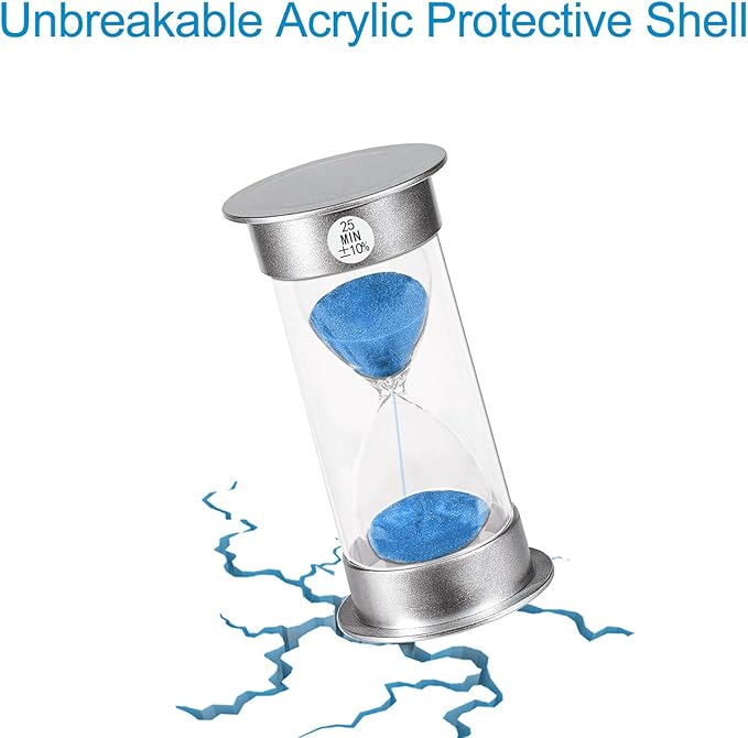 - Best Time Management Tool: The large hour glasses with sand 25 minutes help your kids do things more efficiently and develop a strong sense of time. The hourglass timer 25 minute can be used for cooking, games, classroom, study, desk office decorative and teachers use