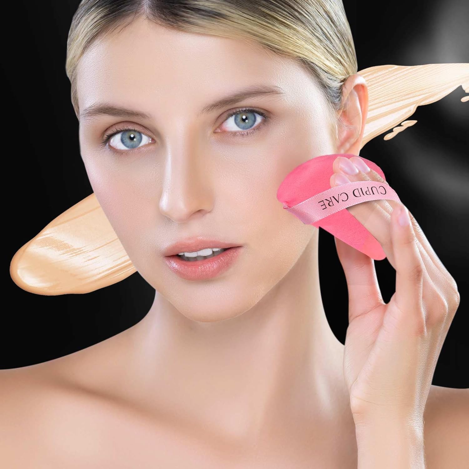 - ღFLAWLESS MAKEUP COVERAGE: The size of the loose powder puff is ideal for use with fingers, and it features a ribbon to keep it securely in place, preventing slipping. Setting powder puff's triangular shape allows it to fit perfectly around the eyes, mouth, and nose, while the rounded tip is perfect for applying makeup to larger areas. This design ensures ease of use and precise application.