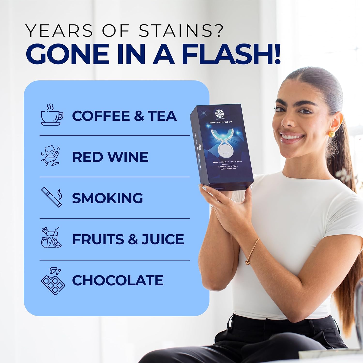 - Easy-to-Use Design: With a user-friendly design, our kit includes a charger cord for the LED mouthpiece, making it easy to recharge for future use. A shade guide helps you track your progress, while an owner's manual provides step-by-step instructions for optimal results. Suitable for teeth whitening for sensitive teeth, our set is also ideal for those seeking professional teeth whitening kits at home.