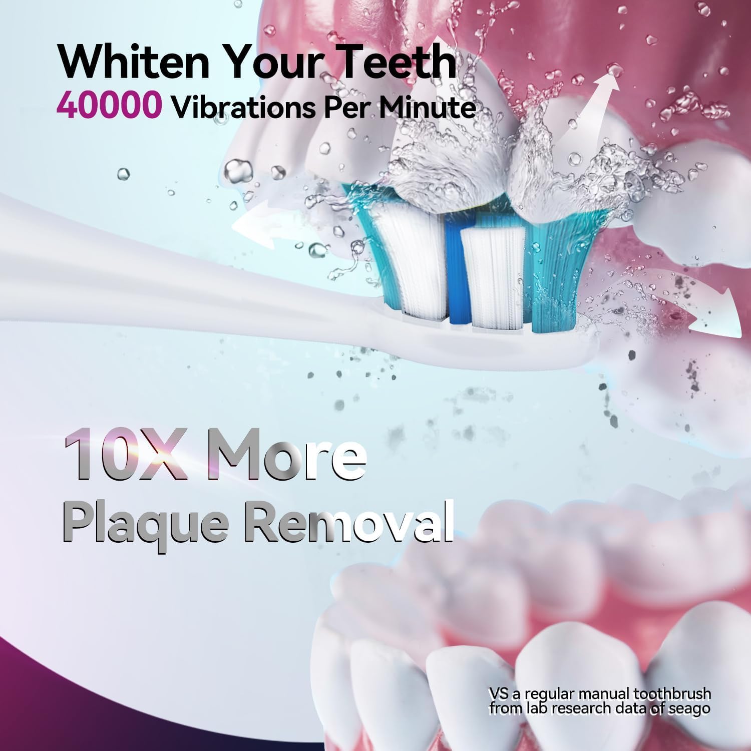 - Superior Cleaning: This sonic toothbrush is designed with your mouth and teeth characteristics in mind. The upgraded sonic technology vibrates 40,000 times per minute and removes 100% more plaque than a regular manual toothbrush